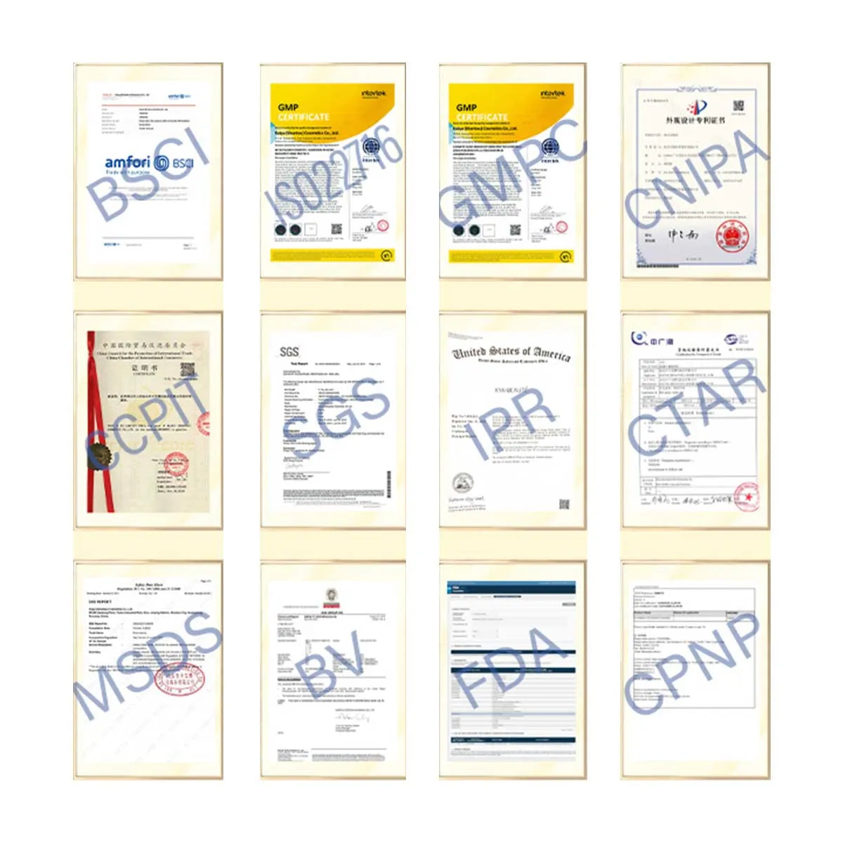As a certified cosmetics manufacturer, KAIYA holds audited factory, GMP and product safety certificates for key lines. These third‑party reports and design patents demonstrate our commitment to compliant, traceable specialty cosmetics manufacturing, so B2B partners can work with us confidently in regulated markets.